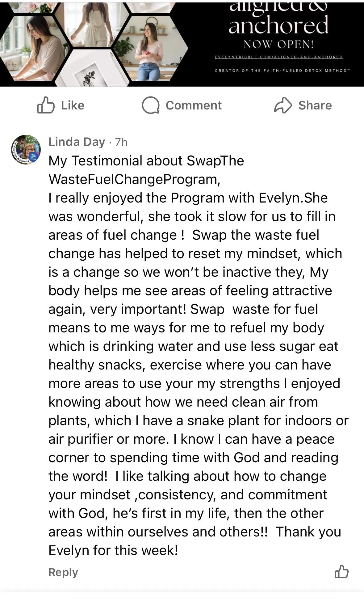 She is the founder of the Faith-Fueled Method™, a signature coaching framework that integrates whole-body wellness, home detox principles, and Kingdom-centered mindset. Through this method, Evelyn equips women to transform their own lives and become certified coaches who lead others from a place of freedom and wholeness.
